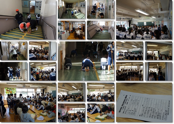 授業参観に引き続き、無言清掃の取組を中学生徒一緒に取り組みました。2・3年生のクラスで全力校歌を聴いてもらい、その後、そのクラスでの質問タイムがありました。小学生の熱心な質問に、中学生も丁寧に答えていたので、中学校生活の様子がだいぶわかったのではないでしょうか。