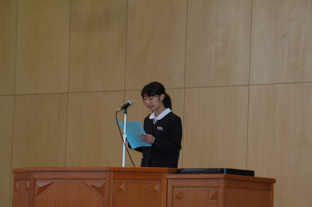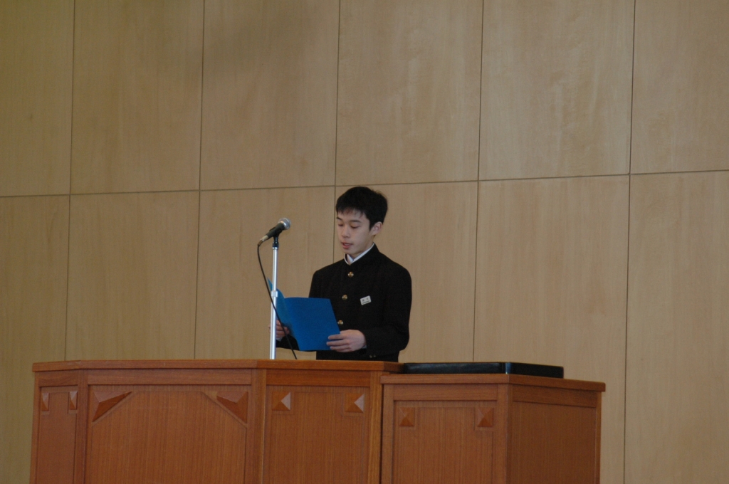 ただいま、1年生代表の倉林さん、2年生代表の鈴木君から、1年間の振り返りを発表してもらいました。