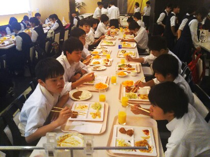修学旅行最後のプログラム、クラス別行動を終えてホテルでビュッフェスタイルの昼食を食べています。これから埼玉に向けて新幹線に乗ります。岡部駅到着は午後6時32分の予定です。