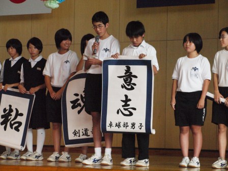 9月25日新人戦に向けて新部長、新副部長が大会の意気込みを漢字一文字で表してくれました。新人戦まであと少し!!チームの心を1つにし、岡中パワーを魅せつけよう!!