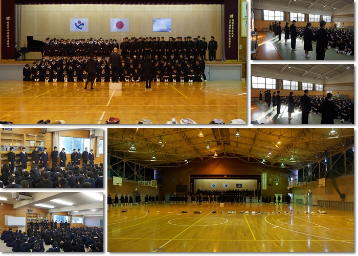 学年朝会が行われ、1・2年生は新しい学級委員の紹介とともに、後半の学年の取組などについて発表が行われました。3年生は、22日に行われる「小島市長と中学生の対話会」に向けたリハーサルを行いました。