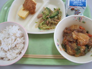 【今日の献立】 牛乳 かつ丼 磯の香あえ さつま汁 今日のように寒い日は、温かい汁が飲みたくなりますね。 今日はさつまいもがたっぷり入った『さつま汁』です。 甘くてほくほくのさつまいもがとても美味しいです。 すりおろしたしょうがも入っているので ...