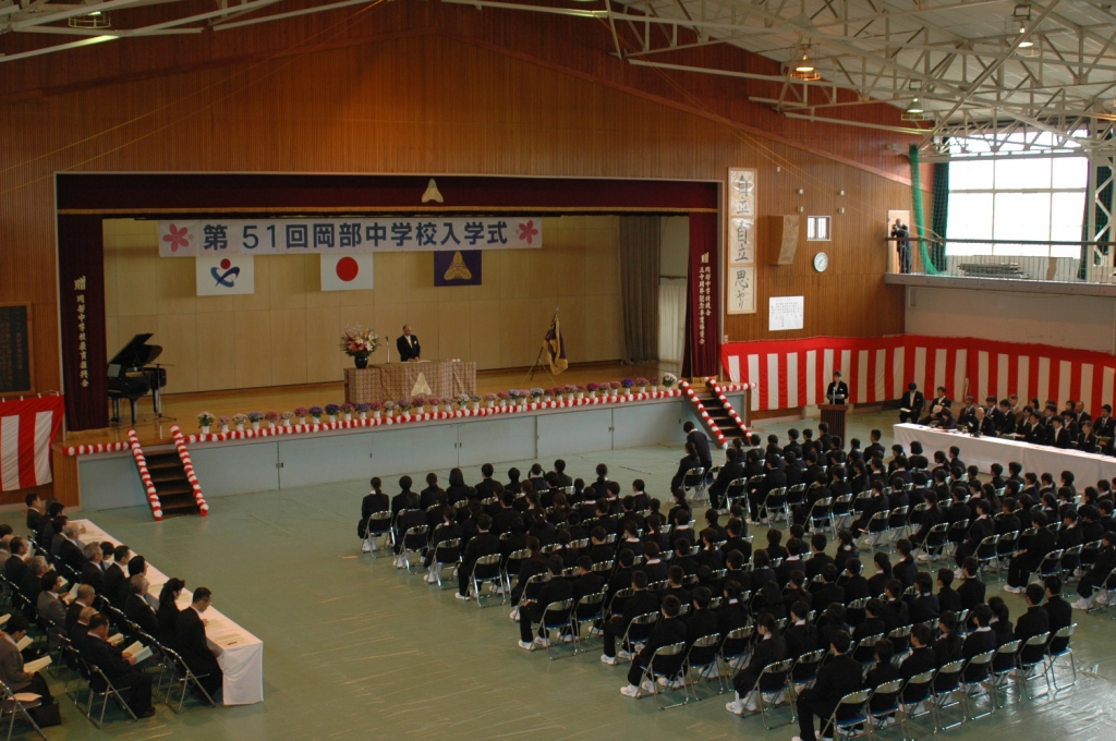 さて、新入生の皆さん、晴れて五十年の歴史と伝統のある岡部中学校の一員となり、緊張と不安の中にも新し