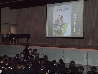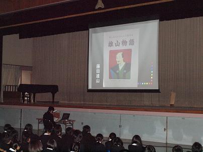 11月19日(月)図書委員会による生徒朝会が開催されました。図書委員長の話に続き、各委員から郷土を代表する人物①岡部六弥太、②畠山重忠、③藤田雄山、④渋澤栄一についての本の紹介があり、生徒の皆さんもおおい興味関心を持ったことでしょう。3年生は受験の合間に、1,2年生は郷土学習に、図書室を訪れ、郷土の偉人について読書してみましょう。
