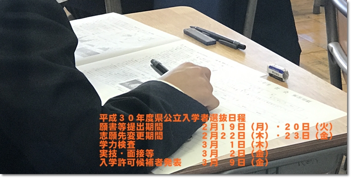 いよいよ埼玉県公立高等学校入学者選抜の出願となりました。自分自身が決めた進路へ向けて、受検する高校へ出願に出かけています。学力検査当日までの準備期間は、本日を含めて10日間。健康にも留意しながら、これまでの積み重ねの継続を!