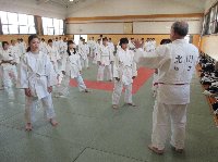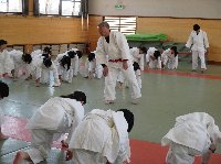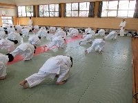 深谷市では柔道学習時の安全確保のため、専門の指導員を派遣する制度があり、岡部中学校では、深谷警察で柔道指導をされている北川先生にご指導いただいています。この日は、1年生が基本の受け身を学習していましたが、はじめはこわごわと転がっていた生徒も、あっという間にそれらしくなっていました。柔道の学習は全学年で