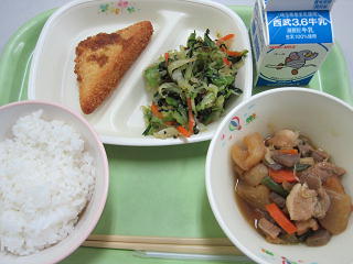 【今日の献立】 牛乳 かつ丼 磯の香あえ さつま汁 今日のように寒い日は、温かい汁が飲みたくなりますね。 今日はさつまいもがたっぷり入った『さつま汁』です。 甘くてほくほくのさつまいもがとても美味しいです。 すりおろしたしょうがも入っているので ...