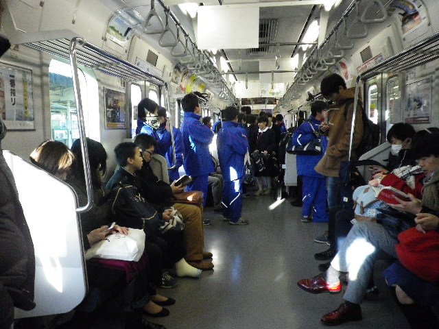中学生がたくさん乗っており、車内も混雑していました。