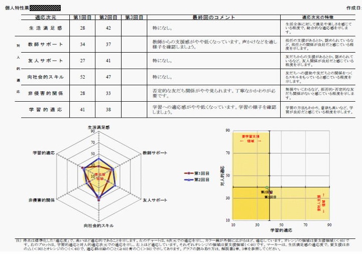 「アセス」を実施しています。学校生活や家庭生活での適応感や人間関係の