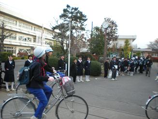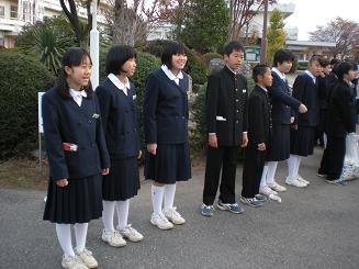 また、本部役員は、選挙公約にあった「あいさつ」運動を正門で行っています。あいさつで、きもちのよい一日がスタートするといいですね。このような生徒会の自主活動は、大変立派です。