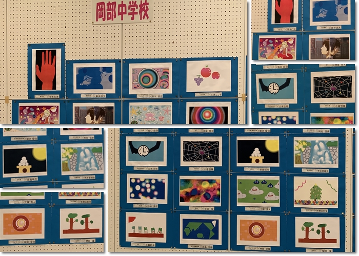 1)ふるさと教育のパネル展示・・・1年生が岡部について調べた学習の展示