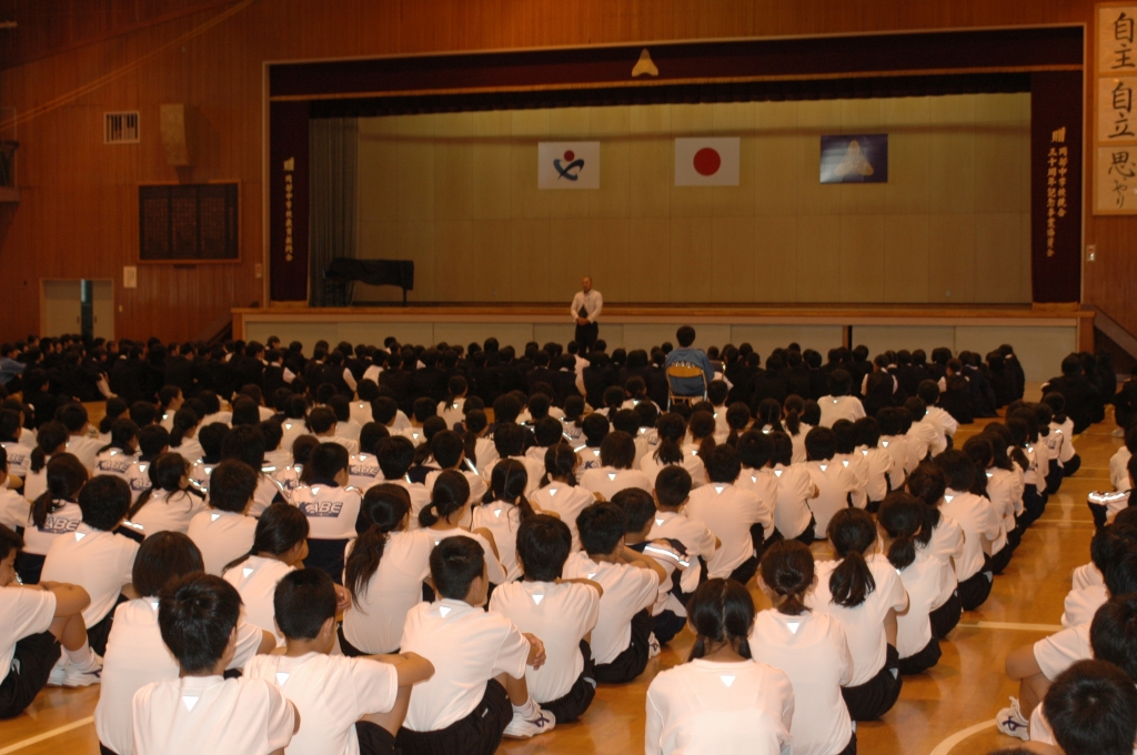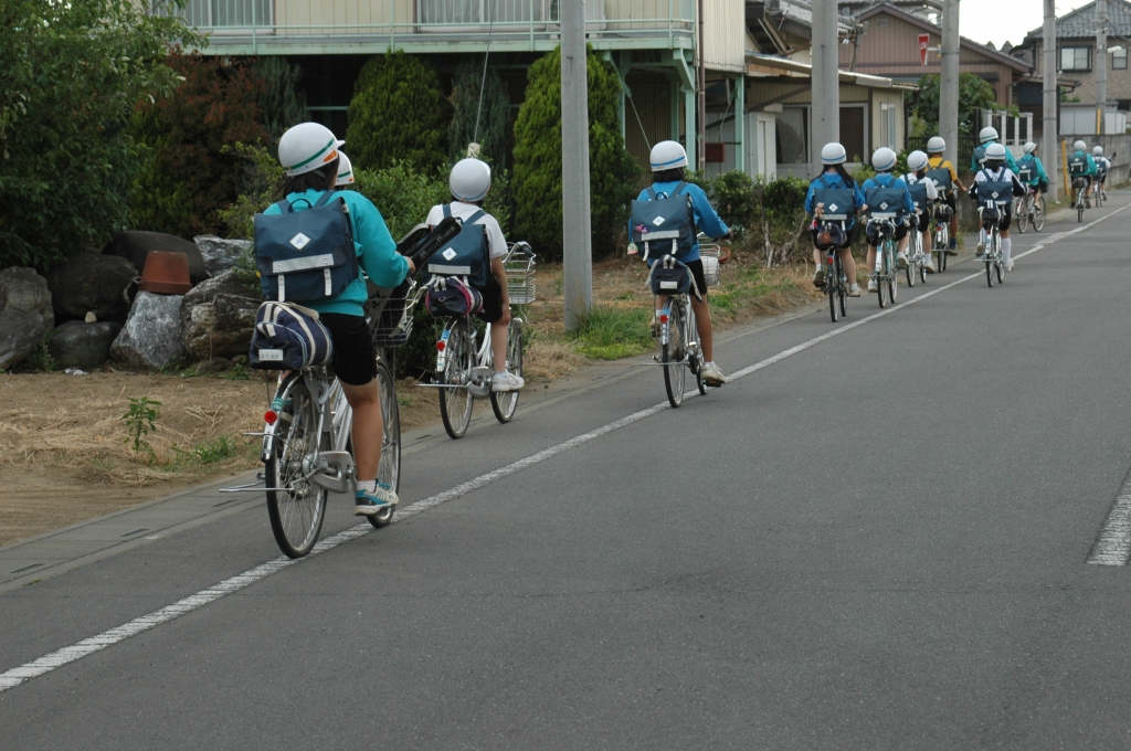 自転車の乗り方については、常に指導をしておりますが、昨日も下校中の生徒が車との接触事故を起こしてしまいました。原因は一時不停止だそうです。昨年12月にも一時不停止での事故がありました。幸い2件ともヘルメットをかぶっていたので大事には至りませんでした。事態の大きさを受け止め、本日臨時の朝会を開き、交通ルールに遵守を指導しました。