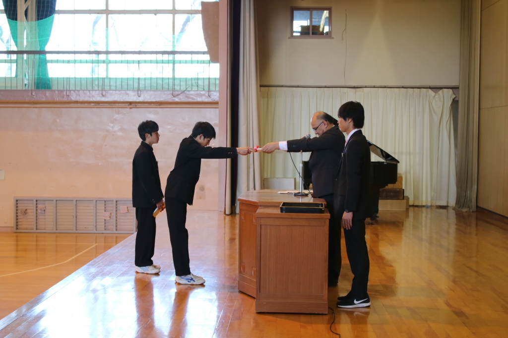 本日で、1,2年生が平成28年度を終えました。修了式では、代表生徒へ