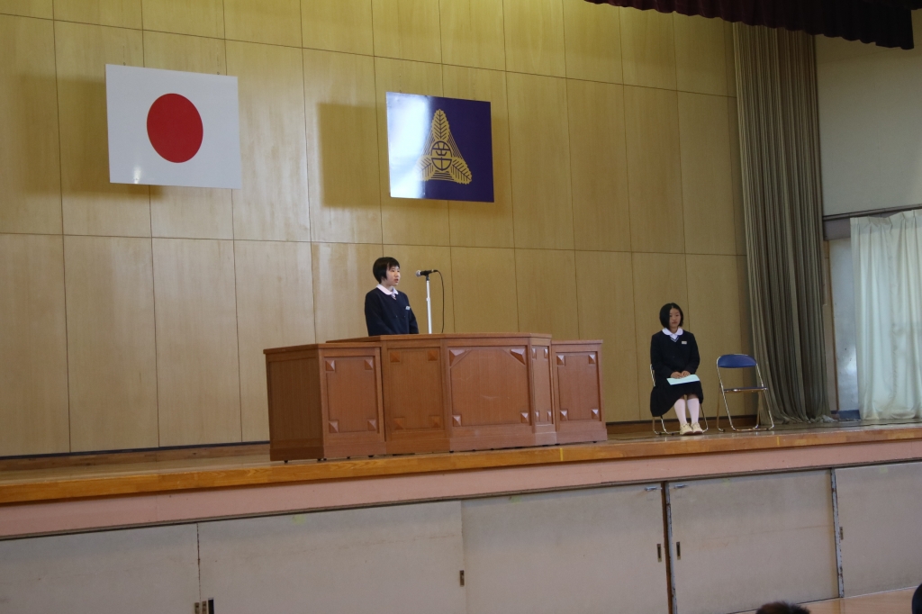 ただいま、1年生代表の小林咲輝さん、2年生代表の赤木春香さんから、1年間の振り返りを発表してもらいました。