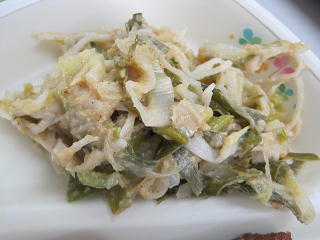 ねぎをむして、糸かまぼことすりごま・酢みそを