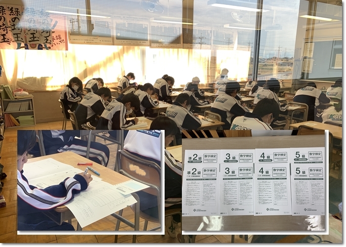今年度から始まった中学校における数学検定が行われました。2年生全員は深谷市からの補助で受検しました。来年度も実施されますので、現在の1年生は今から準備を進めましょう。