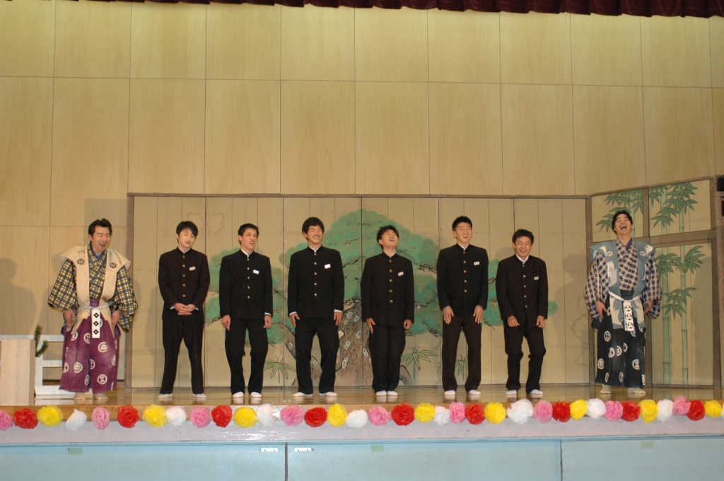 午前中は芸術鑑賞会で今年は狂言を鑑賞、体験しました。