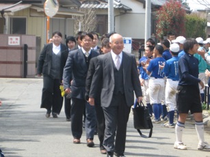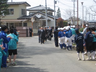 部活で登校していた生徒がお出迎え。
