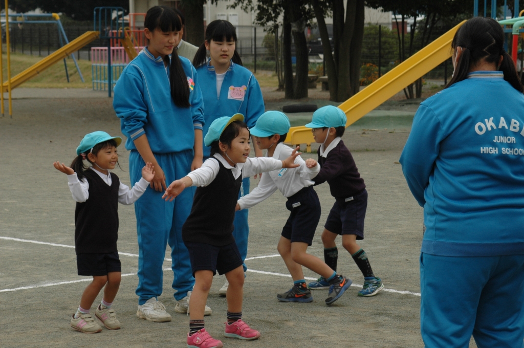 3年生家庭科の保育実習が岡部幼稚園で始まりました。
