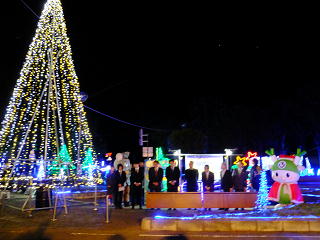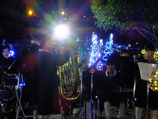 岡部中学校吹奏楽部の演奏でイルミネーション点灯式が行われました。