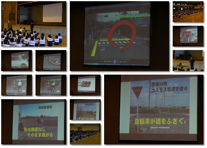 下校の際に車と接触するようなこともあり、臨時の全校集会(交通安全)を行いました。通学路における危険箇所や過去に車と接触した場所など、スライドを用いて具体的に生徒に話をしました。ご家庭でも、改めて自転車の乗り方などについてご指導いただければ幸いです。