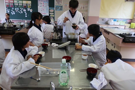 2年生の家庭科で深谷市の郷土料理でもある、煮ぼうとうの調理実習が開始しました。煮ぼうとうは、小麦粉がたくさんとれる土地ならではの郷土料理です。