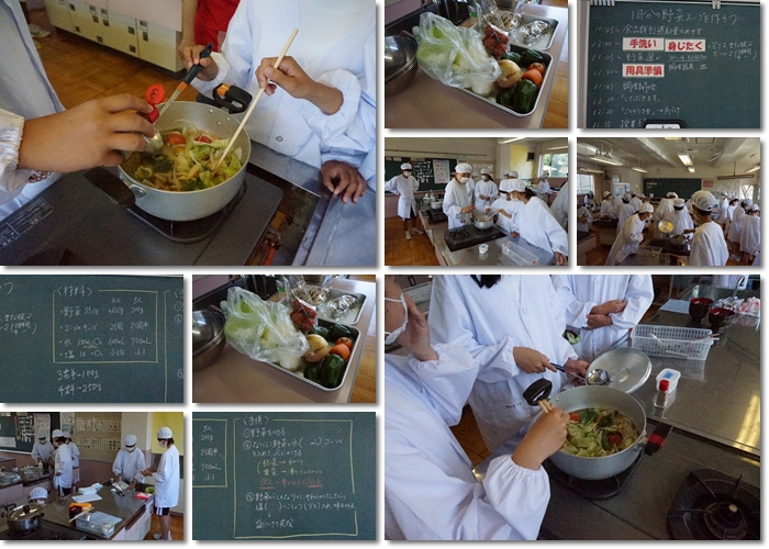 1年生が調理実習を行っています