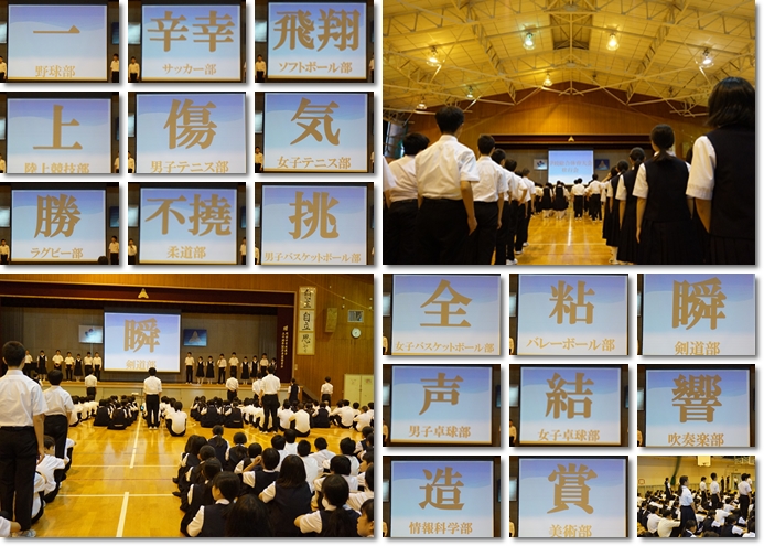 を忘れずに、大会や各種コンクールに臨んでもらいたいと話をしました。困ったときこそチームメートと話をすること、決して一人じゃないことなども伝えました。明日からの岡中生の気迫あふれる活躍を期待してやみません。
