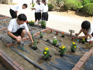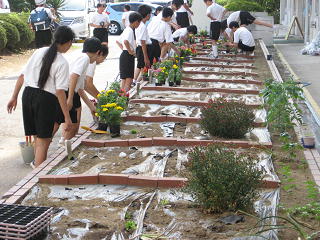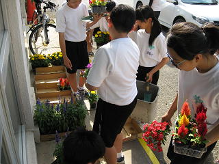 学校が花であふれ一段ときれいになりました。ご協力ありがとうございました。