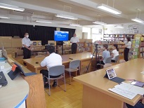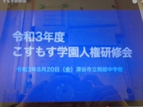 密を避けるために、各学年から2名の職員が参加して、他の職員はyoutubeでの動画配信を視聴しました。講師の小神野先生からは貧困格差、ヤングケアラー、性的マイノリティ、コロナ差別など最近問題になっている人権に関する事を説明していただきました。今日の研修を2学期からの学校生活に役立てたいと思います。