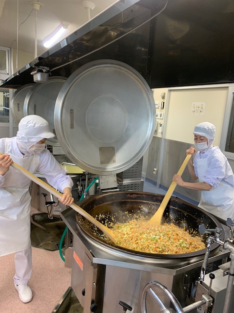 調理をするときも、調理員さん同士の息が合わないとできません。