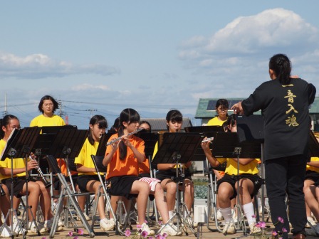 いつもと違い野外での演奏でしたが、強風にも負けず、