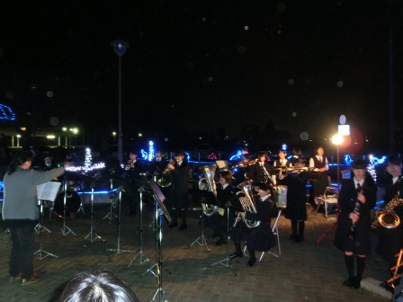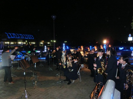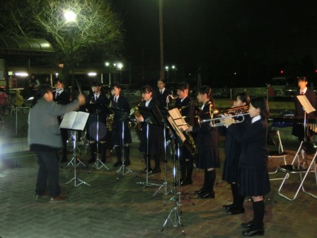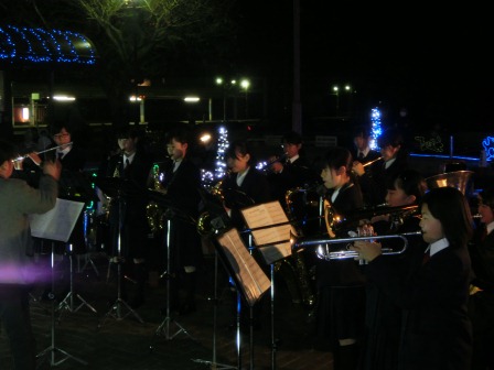 12月2日午後6時より岡部駅の点灯式が行われ、本校の吹奏楽部の生徒が生演奏を披露し、点灯式を盛り上げました。
