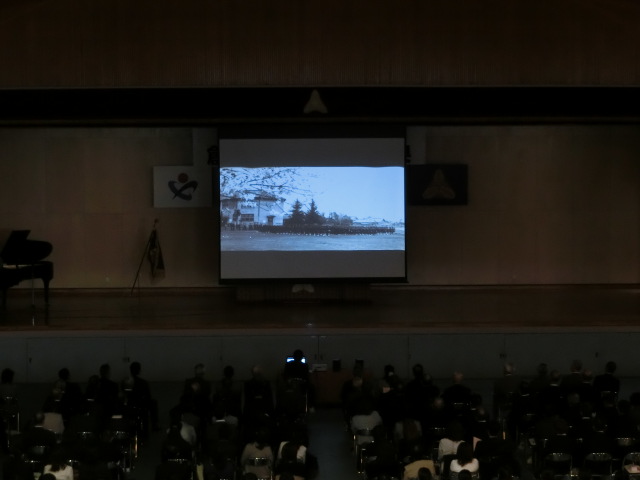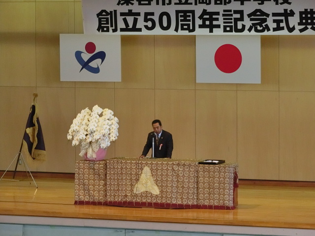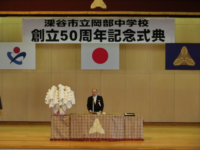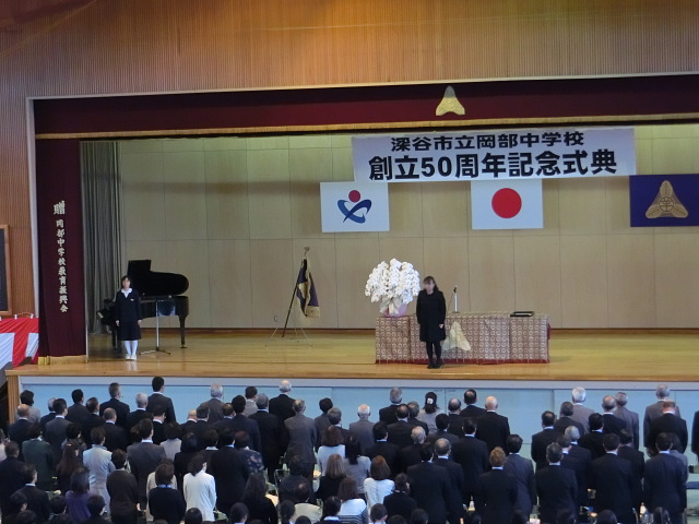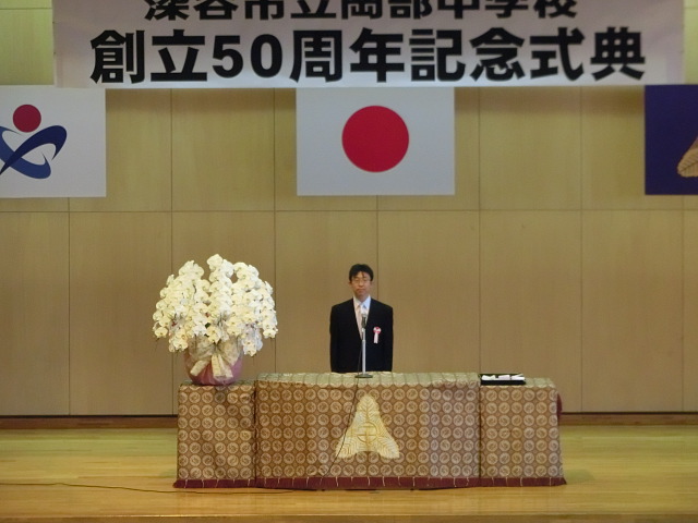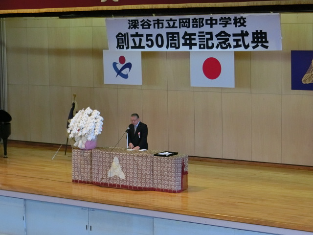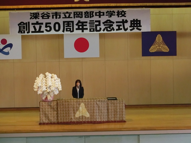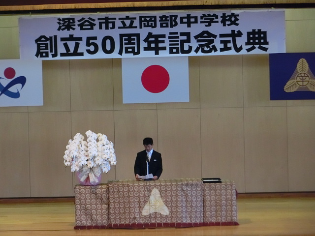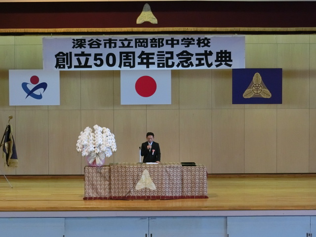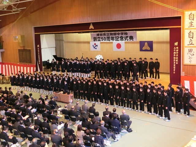 100名を超える来賓の皆様を迎え、岡部中学校創立五十周年記念式典が