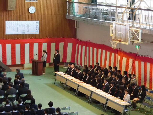体育館にて行われました。50年間の本校の歩みをふり返るとともに、これ