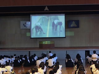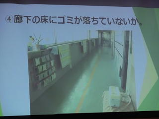 本校のトライアングルプロジェクトの1つ、無言清掃を取り上げ、本物の無言清掃の行い方の説明や美化点検のチェック項目の確認を行いました。