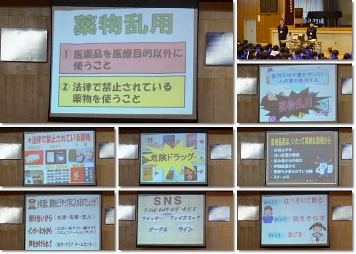 冬休みを前に、昨日(12月18日)薬物乱用防止教室を実施しました。日頃からお世話になっている、スクールサポーターの伊藤さんと上原さんに、薬物乱用の怖さを教えていただきました。