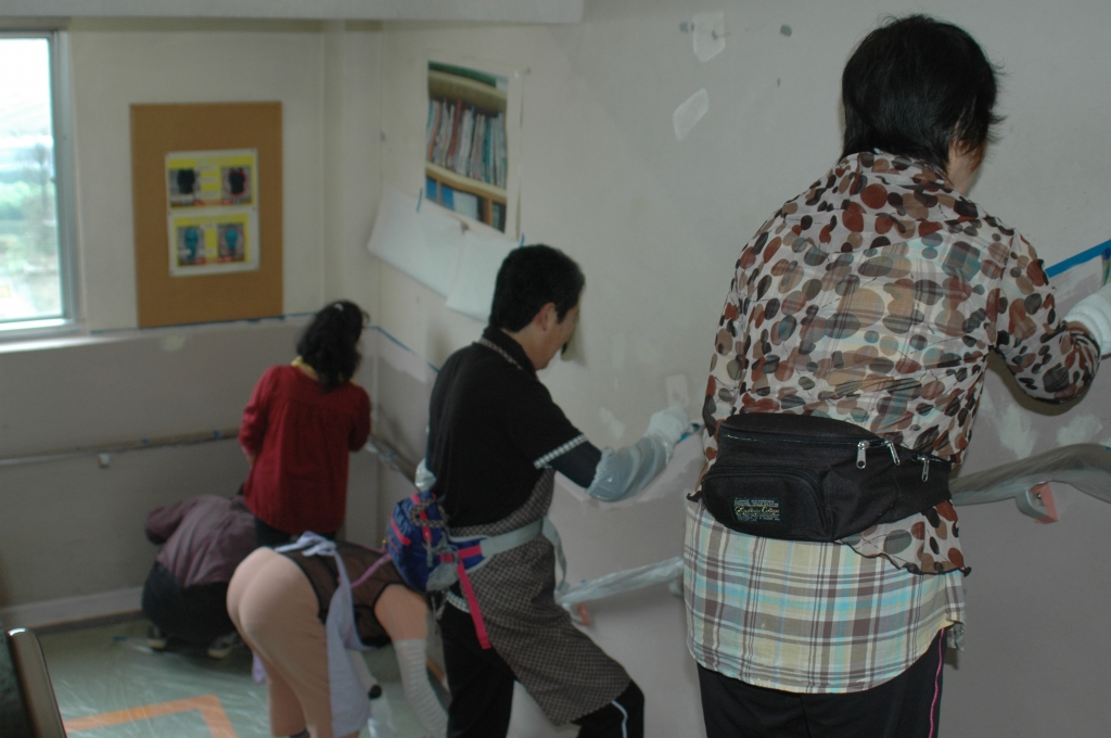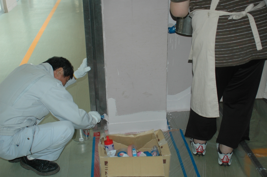 学校応援団によるペンキ塗り