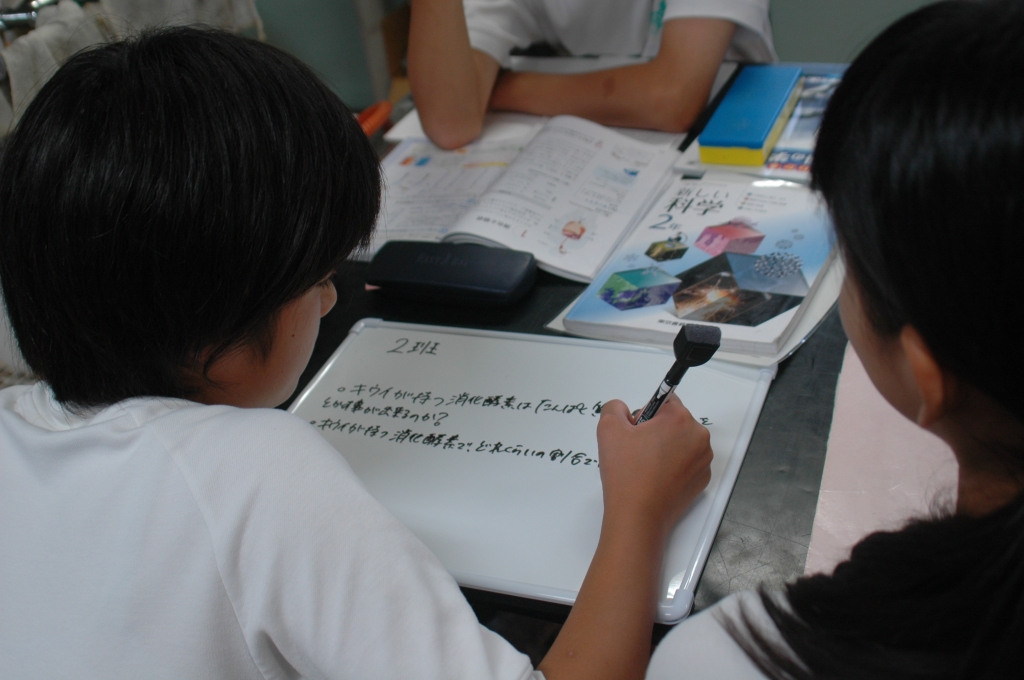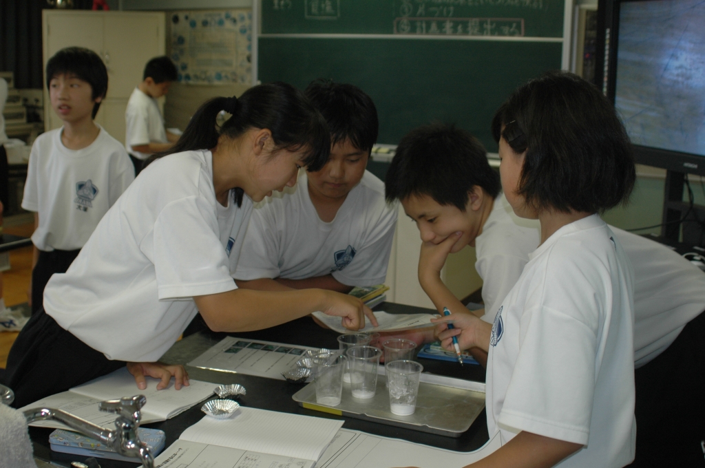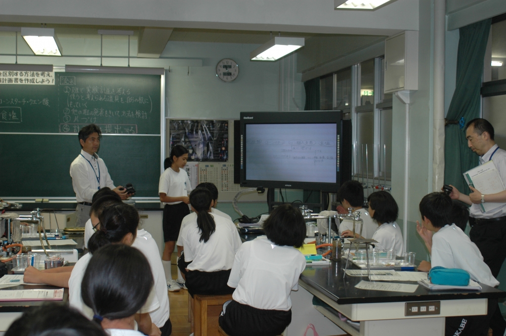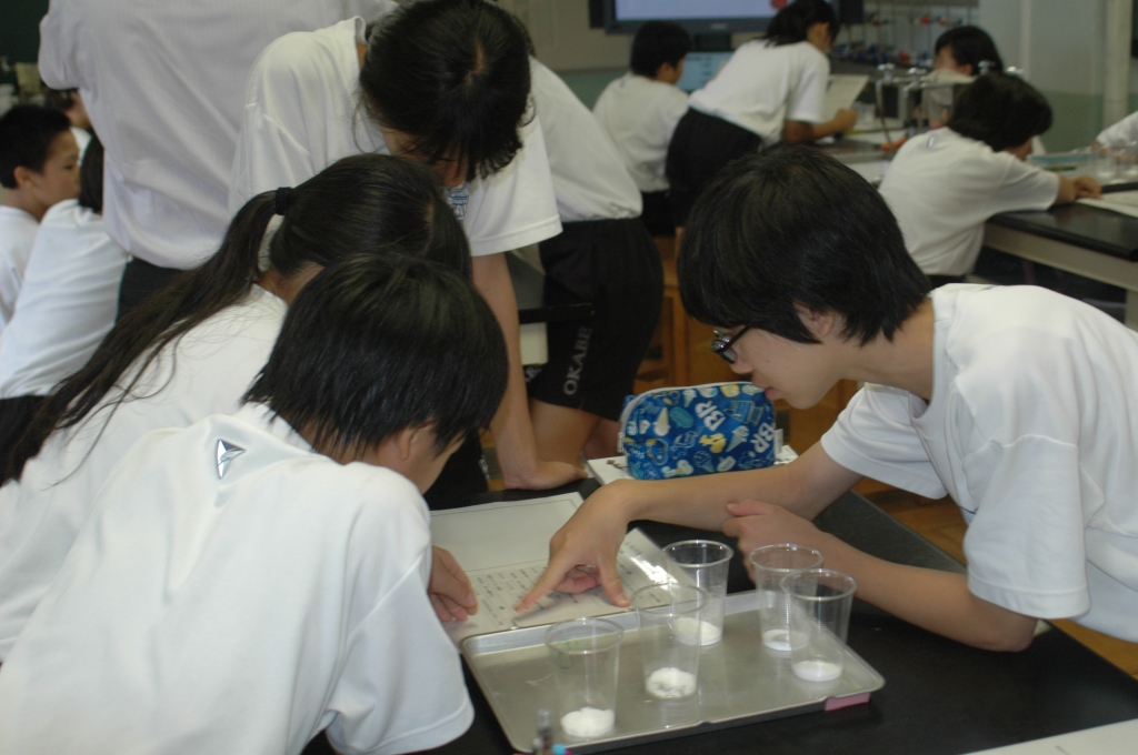 理科の授業を研究しています。どの生徒もチームワーク良くがんばっていました。
