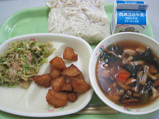 五目うどん 牛乳