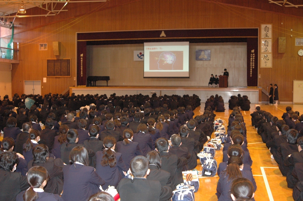 アップをするために、生徒会からの提案や代表生徒による作文