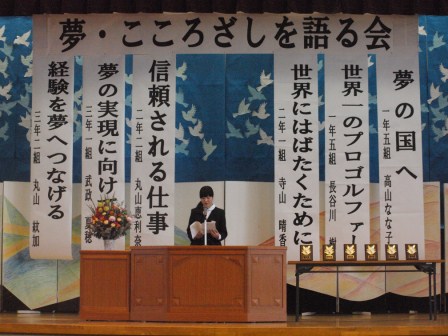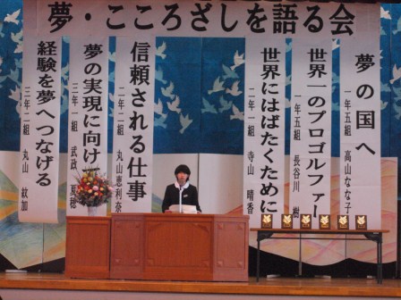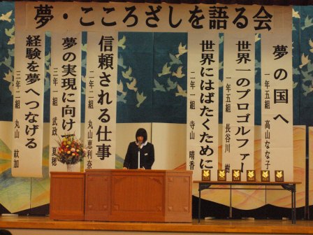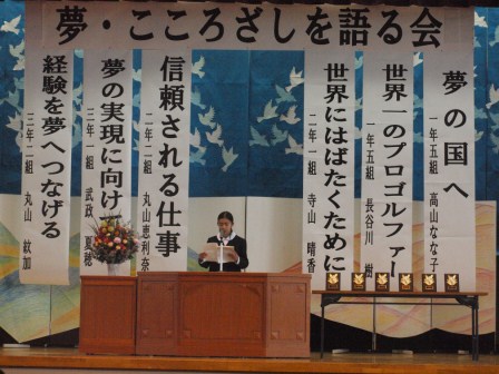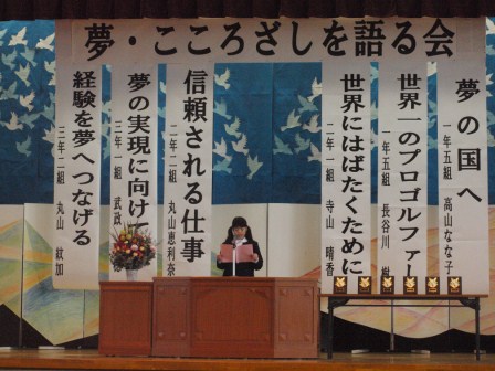 各学年から2名の代表者が自分の夢について発表してくれました。