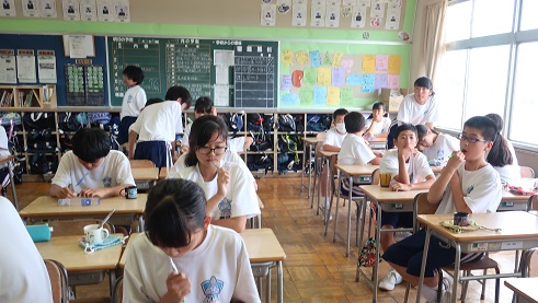 オクラも薄く切り火が通りやすくしてあります。たまごも入ったスープなので生徒もよく食べていました。