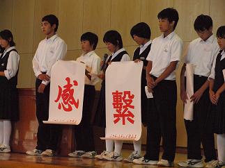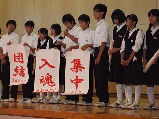 各部から大会に向けての意気込み発表があり、続いて、校長先生から「大会で最大の敵は己である。己に負けるな」との激励がありました。また、「3年生は、自分が教えてきた後輩が、どのような成果を収めるか、見届ける責任がある」との話もありました。まさに、岡中が一つになって戦う新人戦です。皆さんの活躍を期待しています。