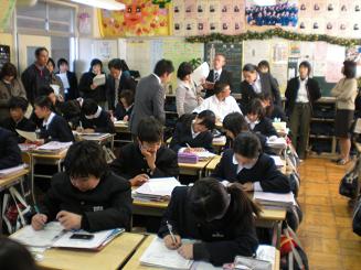 市内から多くの教職員が岡中に来て、学習の様子を見てくれました。どの生徒も一生懸命に学習していました。