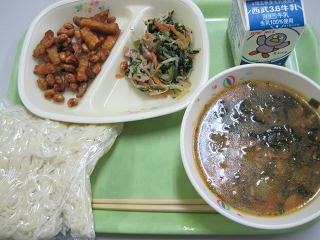 2月5日の給食は、 ☆牛乳 ☆ご飯 ☆ヤンニョムチキン ☆チョレギ風サラダ ☆サルグクス でした。 2月6日から始まるミラノ・コルティナオリンピックにちなんで、この日の給食は2018年に開催された平昌オリンピックの開催国である韓国の料理でした。 サ...