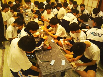 修学旅行の夜は清水焼絵付け体験。思い思いの絵をマグカップに描いていました。この作品は焼成後に学校に届きます。お楽しみに。