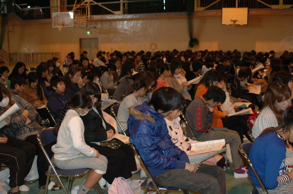 165名の6年児童と保護者の方に集まってもらいました。