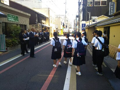 おはようございます。修学旅行2日目はタクシーを利用しての京都市内見学です。班別で行動し、夕方、建仁寺に集合します。