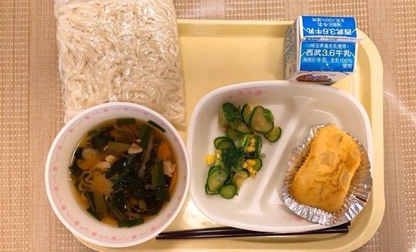 岡部中の生徒は、とても配膳が早いです。12時50分がいただきますの時間なのですが、それより早く食べ始めているクラスもあります。 【今日の埼玉県産】地粉うどん・牛乳・梨 【今日の深谷市産】人参・きゅうり